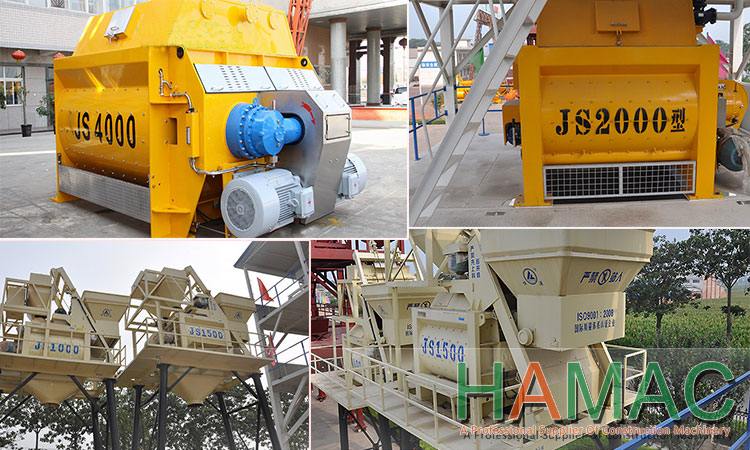 If you already have one small concrete batching plant, the mixer is broken or old type, we suggest JS or HTS series twin-shaft concrete mixers. After all twin-shaft concrete mixers are mainstream now in the world.