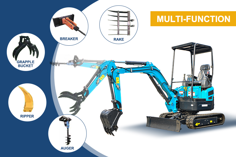Mini excavators have the characteristics of compact appearance, low price, easy maintenanceand high work efficiency. 1. Wide scope of application: It has good flexibility and is suitable for excavation work in housemaintenance, various pipelines and other infrastructure construction. Because of its small scale, it has some basic functions of medium and large excavators
