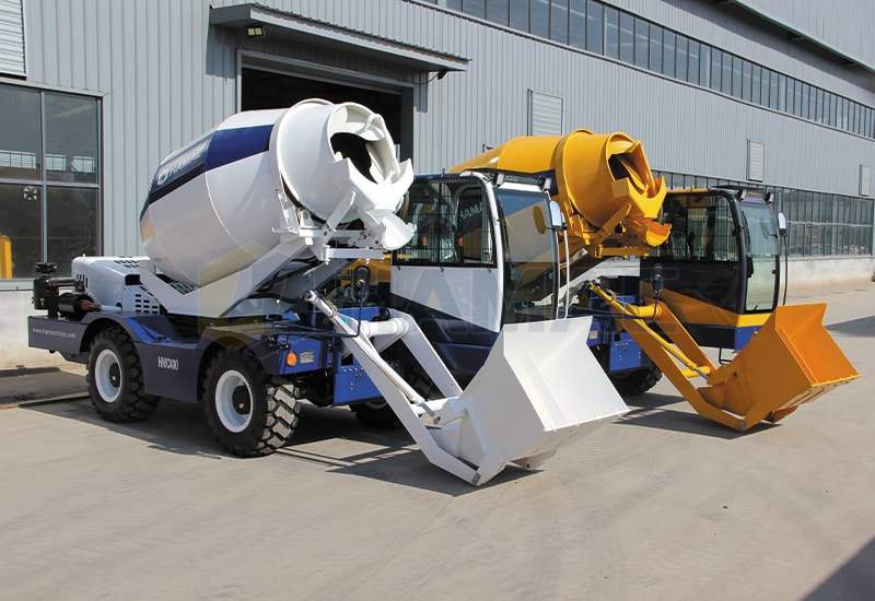 5. 270 degree rotation mixing drum, it can discharge the concrete in different directions;