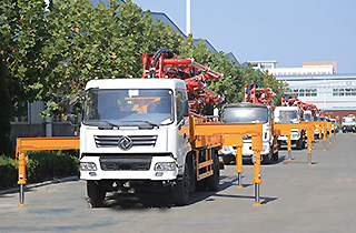 Truck-mounted Concrete Boom Pump is the refined product among the middle and short arm pump truck, after HBT trailer concrete pump, truck-mounted concrete pump, HGY hydraulic concrete placing boom, and it is the high efficient concrete conveying equipment integrating driving, pumping, placing. The boom covers high reliability, economy, safety, durability, owning reasonable matching of Chassis, power, electric control and hydraulic pump system. Besides, it has flexible telescopic boom, less space occupation of the leg, convenient moving vehicle, flexible and security.