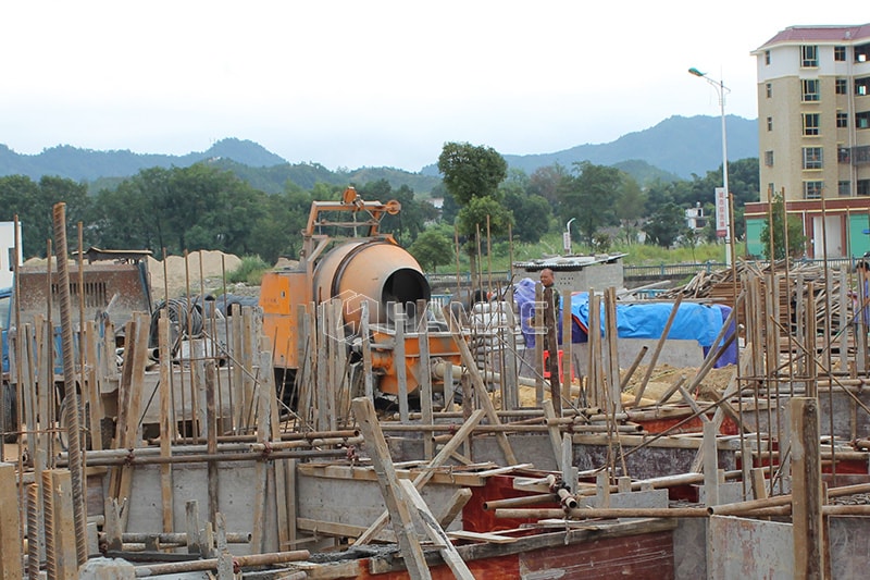Working site of Diesel concrete mixer pump